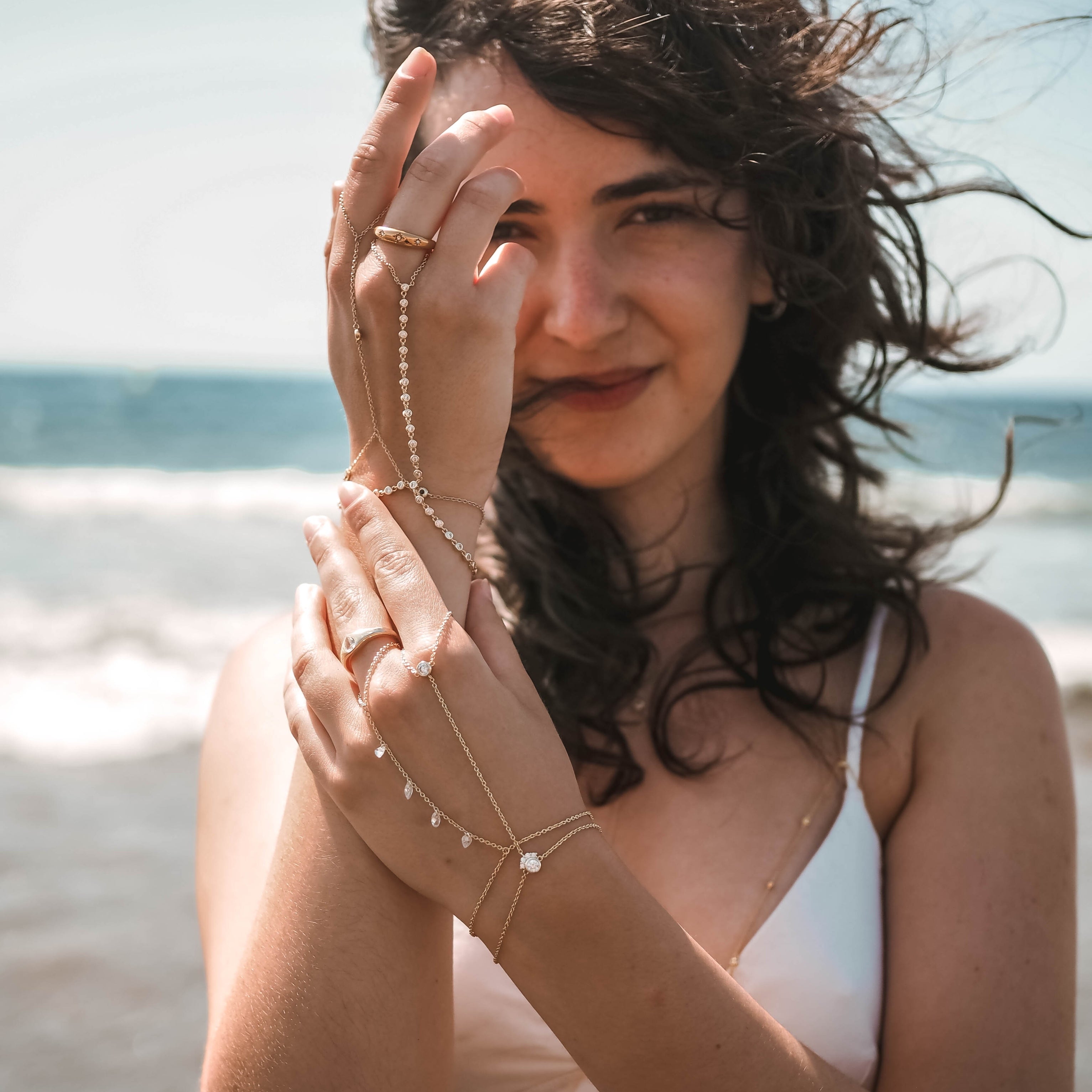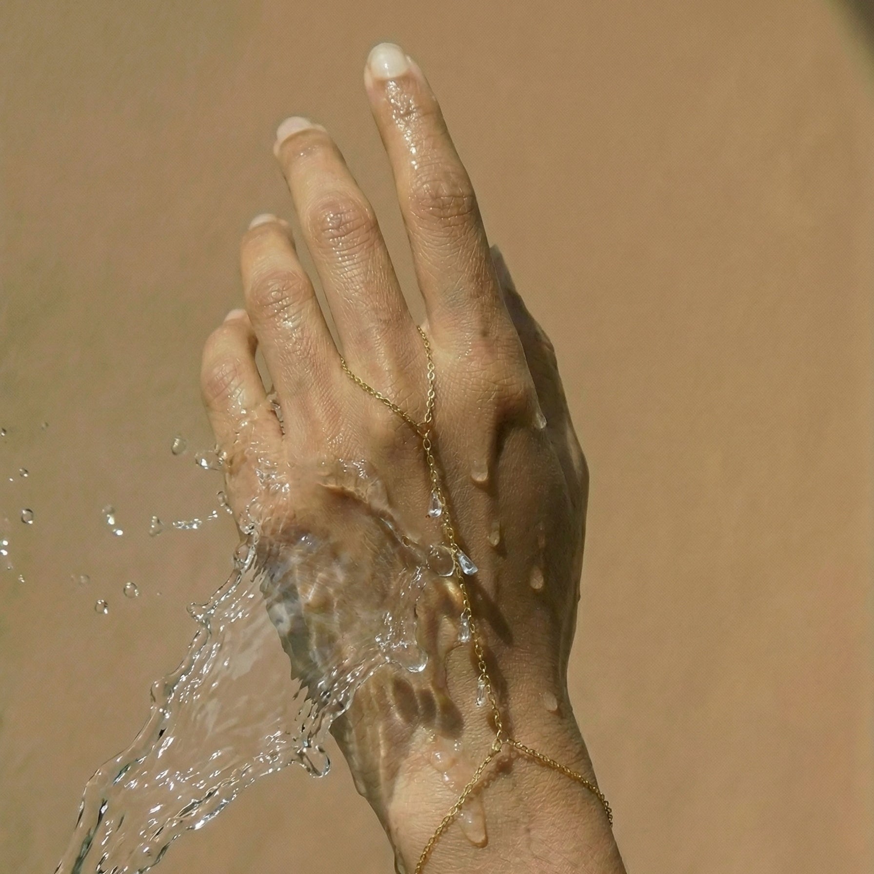 Lune Drop Waterproof 14k Gold Hand Chain